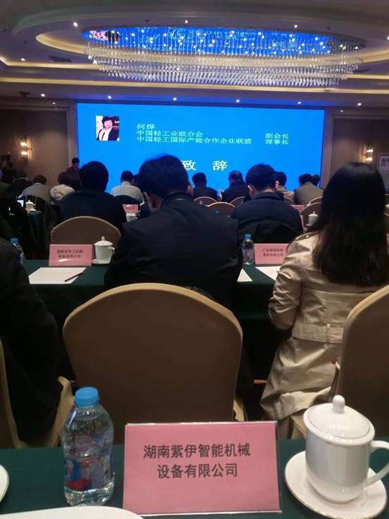 2017年11月1日--湖南紫伊智能機械設備有限公司受邀參加“中國輕工業(yè)國際產能合作主題論壇暨產業(yè)對接會”、“中國輕工機械協(xié)會第五屆七次常務理事擴大會”;會議期間深受中國輕工業(yè)聯(lián)合會副會長、中國輕工國際產能合作企業(yè)聯(lián)盟理事長 何燁的情切指導和關懷!